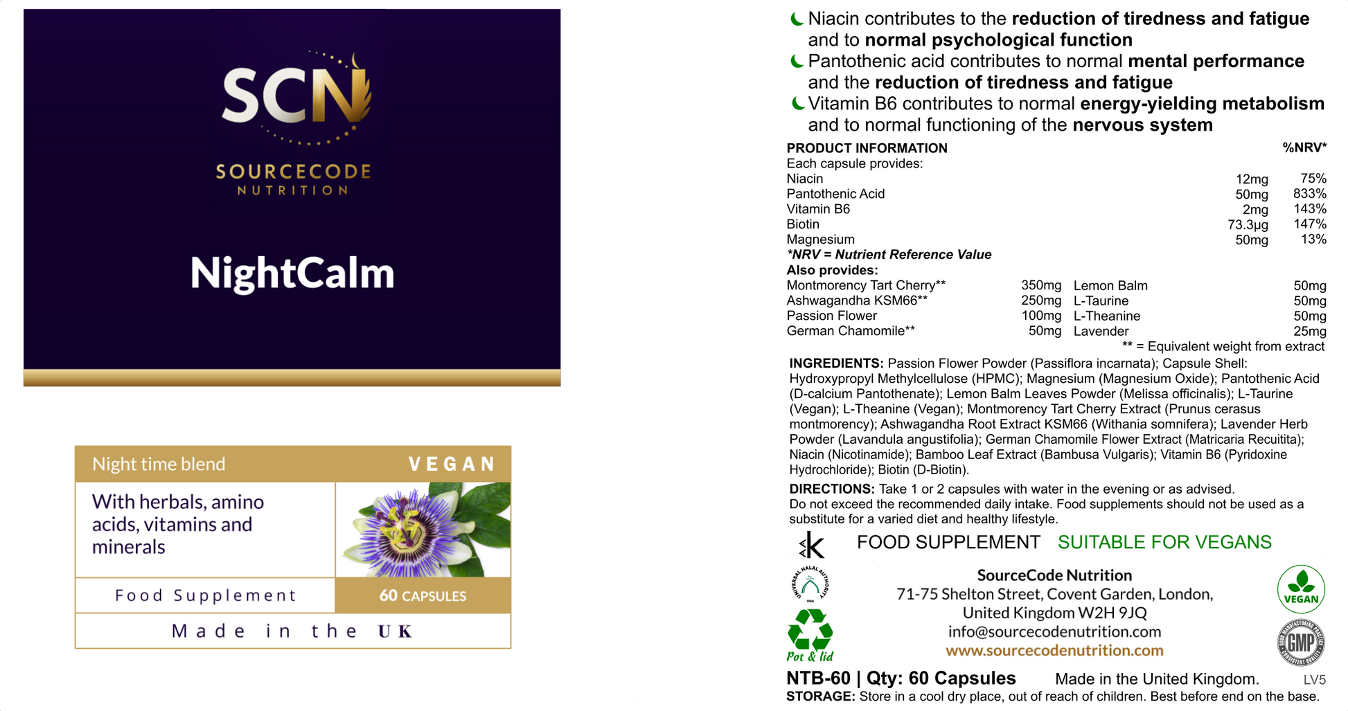 NightCalm delivers a premium blend of natural sleep-supporting compounds designed to promote deep, restorative sleep without morning grogginess. Our scientifically formulated combination helps calm the mind, relax the body, and optimise sleep quality for those seeking natural sleep support.