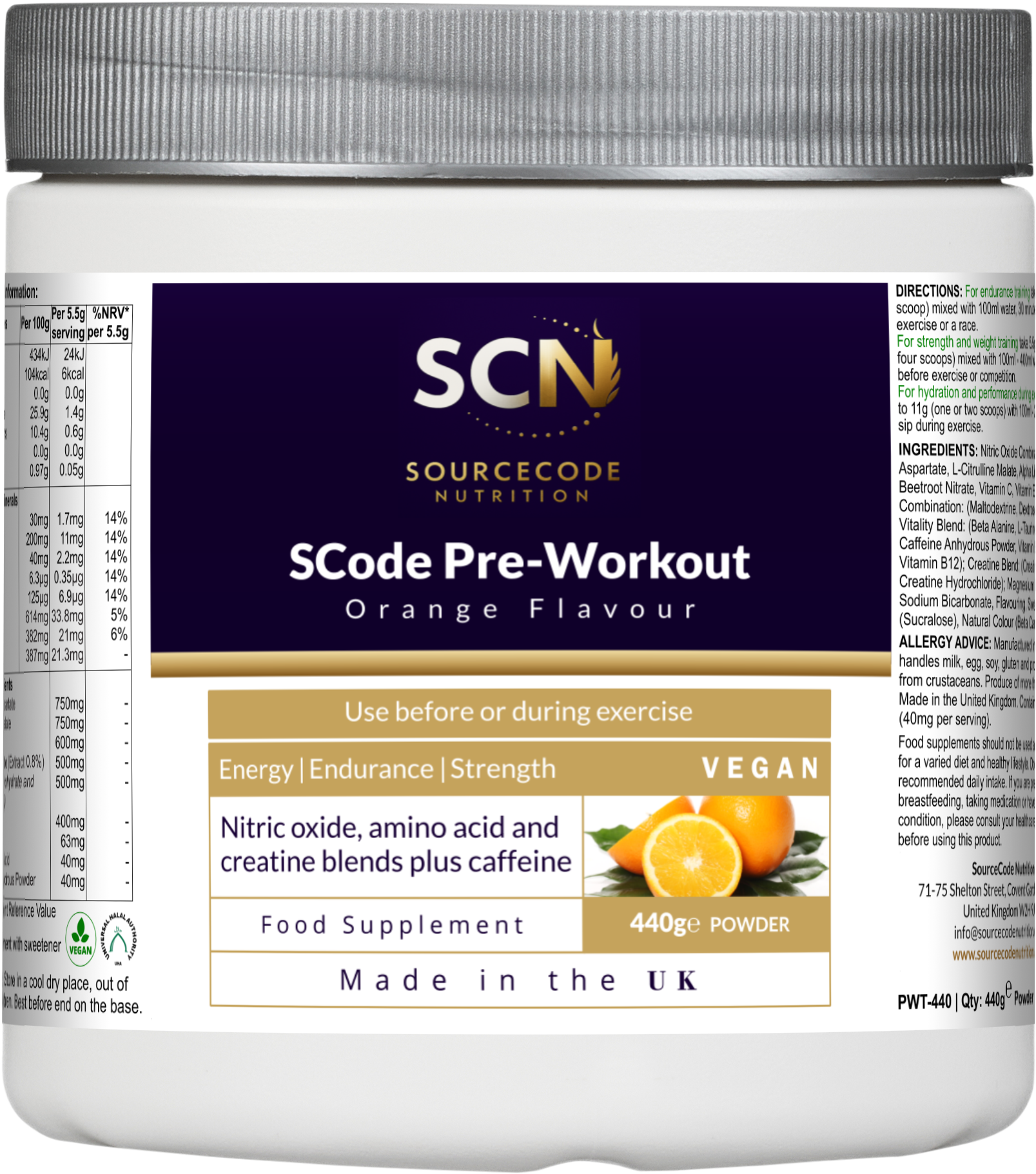 SCode Pre-Workout delivers an advanced performance-enhancing formula designed to maximise energy, focus, strength, and endurance during training. Our scientifically formulated blend provides comprehensive support for every aspect of workout performance without unwanted side effects.